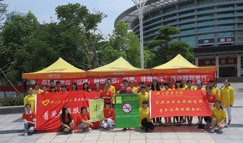 本网讯(通讯员 赵连涛 石苗苗)5月31日是世界卫生组织发起的第28个世界无烟日。公共卫生与管理学院青协分会携同五院普爱志愿服务队于当天上午在文明广场开展了“放下手中香烟,还你健康人生”的主题志愿活动。