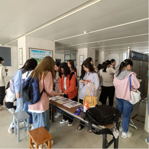 在科教楼一楼,同学们陆续来到活动现场以线下扫码答题的方式参与团史知识竞赛并在活动主题展板上签名写下对青年的祝福和期望,激励广大青年学子,奋斗自我,立志报国。
