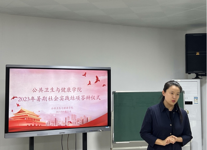 本网讯(通讯员李张自)躬行实践,力学笃行。9月21日,公共卫生与健康学院举行了2023年暑期社会实践结项答辩仪式。公共卫生与健康学院分党委副书记牛佳及全体辅导员出席本次活动并担任评委。