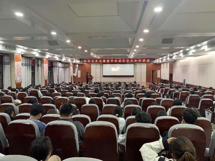 本网讯(通讯员程孟凡)为普及消防安全知识,提高学生防火防灾意识,增强学生安全逃生能力,创建平安和谐校园,公共卫生与健康学院于10月29日晚上6点半在8号楼多功能会议室开展消防安全教育培训。讲座特邀校保卫处马越老师担任主讲,学院分党委副书记牛佳主持活动,学院全体辅导员、部分教师、全体大一新生和其他各年级学生代表近400人参加此次培训。