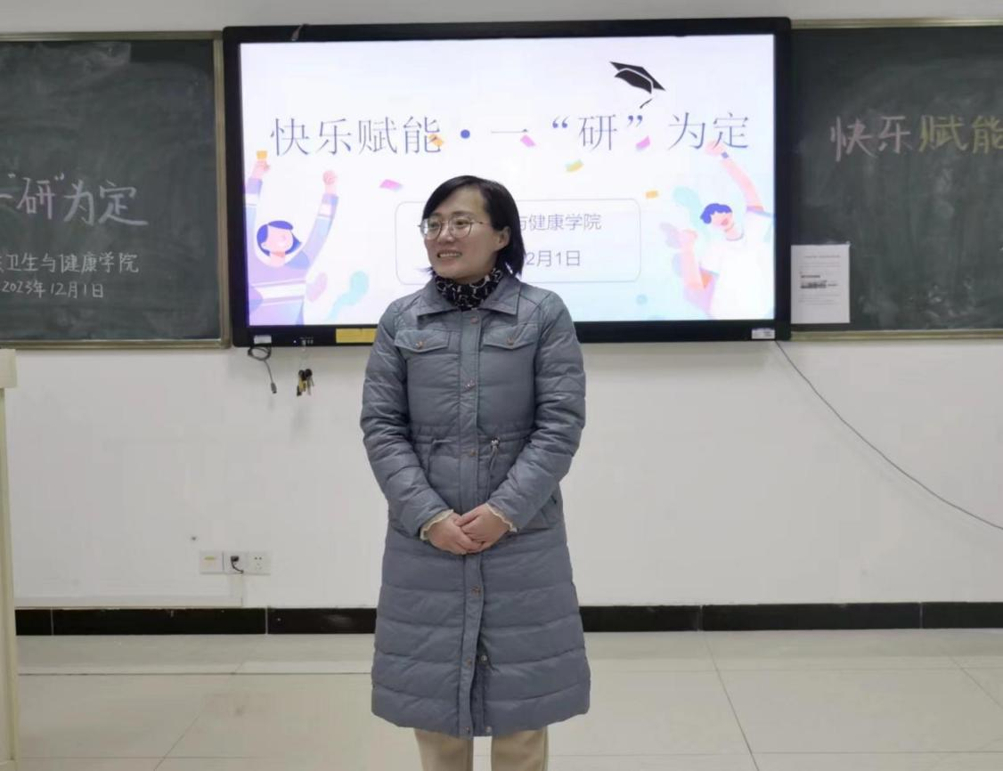 本网讯(通讯员 常俊)为缓解学生考研备考压力,全面提高学生心理素质。公共卫生与健康学院于12月1日在9号楼9417教室开展“快乐赋能,一‘研’为定”考研慰问及心理团体辅导活动。此次活动由辅导员石中玉主持,院分党委书记聂秀、副院长陈晓林、副书记牛佳、学工处心理健康中心刘媛媛、张秋月、辅导员赵连涛、王晶艳参观了本次活动。