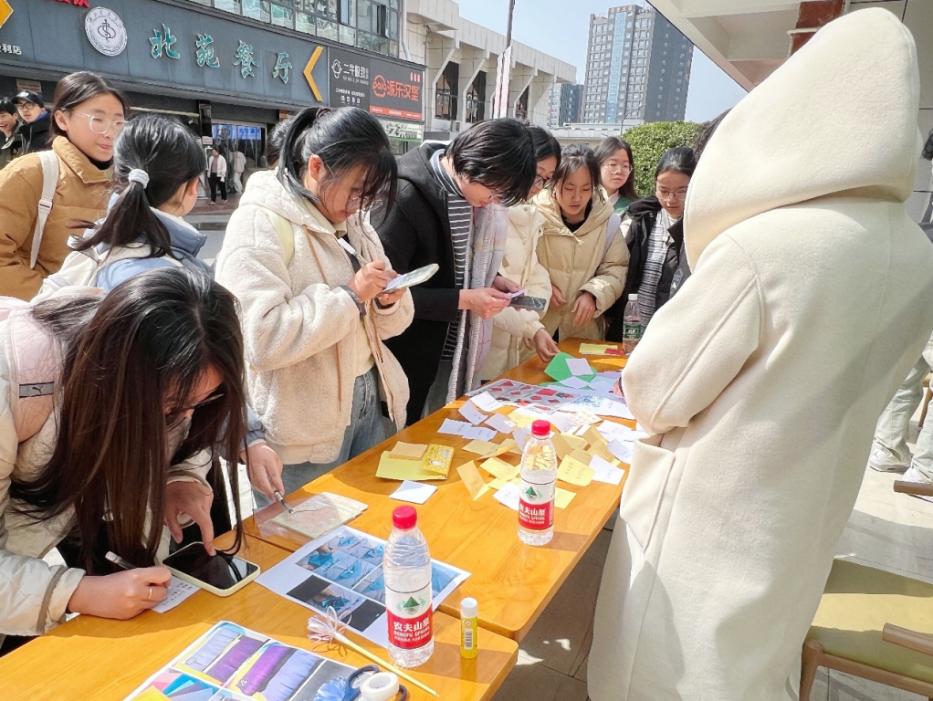 上午9点活动准时开始,现场欢庆气氛浓郁。我院青年志愿者协会在文明广场以“颂扬巾帼风采,共筑时代芳华”为主题,通过猜字谜、写便利贴寄语等方式,帮助同学们了解女性在中华民族浩瀚历史进程中所作出的贡献。学生会在精勤活动社区以“巾帼她力量,逐梦新时代”为主题,通过“透过眼睛读懂她”“见花如面,向美而生”等活动来提升同学们对女性权益问题的关注。