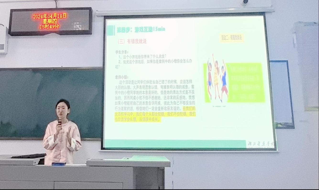 邱爽老师作总结发言指出:“各位老师的精彩展示可见对于大学生心理健康工作的高度重视,望各位老师在今后的主题班会中都能够以讲课的方式开展,吸引同学们的兴趣,提高班会质量,帮助学生更好成长。”