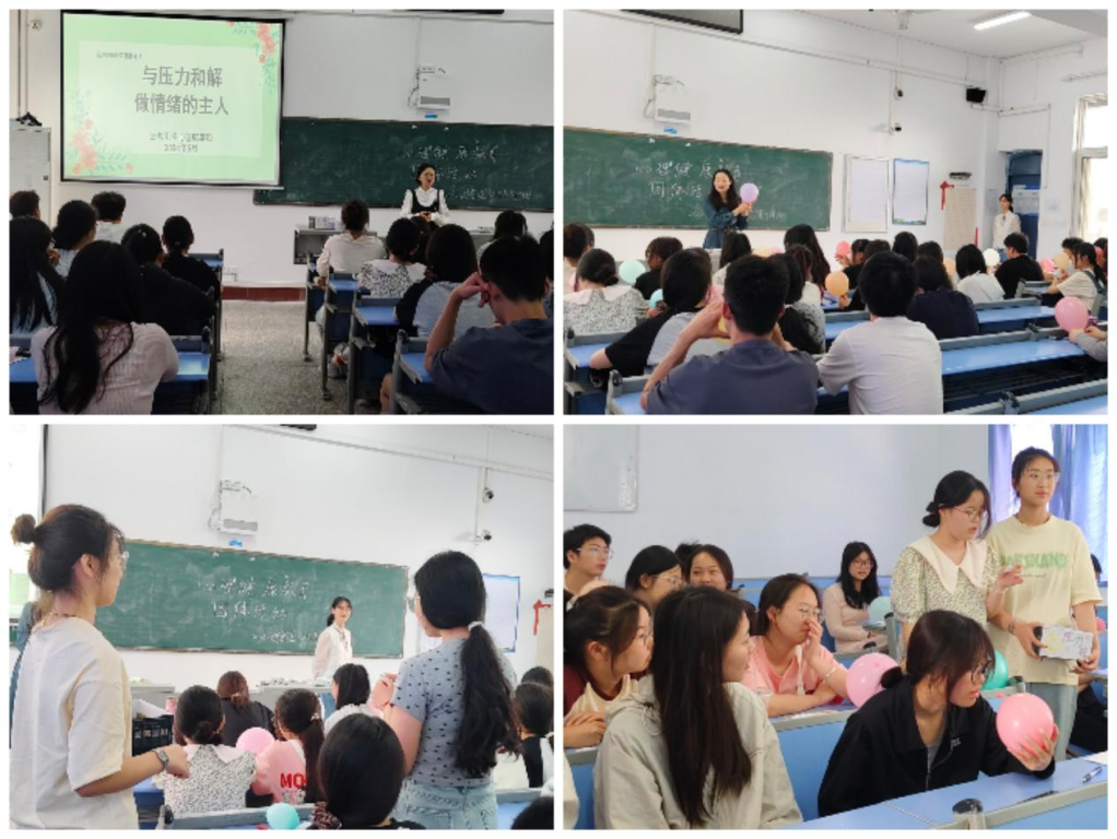 本网讯(通讯员 王晶艳 冯楠琦 黄博言)为进一步加强大学生心理健康教育,提升学生心理健康素养,营造积极向上和谐友爱的校园氛围,4月份以来,公共卫生与健康学院以“打开心灵之窗,拥抱美好未来”为主题,举办心理健康教育系列活动。学院分党委副书记牛佳、分团委副书记韩慧、学生工作办公室副主任石中玉及各班辅导员参加相关活动。