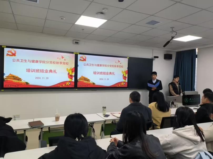 本网讯(通讯员 耿昊鑫)2024年11月20日下午5点10分,公共卫生与健康学院分党校于公卫大楼702会议室开展2024年秋季党校培训班结业典礼。公共卫生与健康学院副院长吕红、学生党支部书记石中玉、研究生党支部书记程孟凡、团委副书记韩慧、辅导员赵连涛、王晶艳、李平,以及本次培训班25位预备党员培训班学员参加结业典礼。