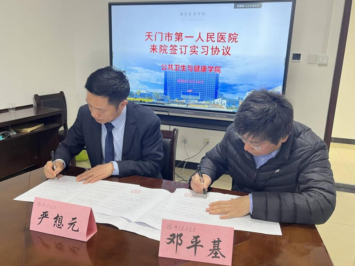 本网讯(通讯员 黄晶晶)2025年3月14日,天门市第一人民医院党委书记严想元,党委委员、纪委书记陈伯勋,信息科主任郭淑娟一行来到公共卫生与健康学院开展交流座谈。双方就人才培养、实习就业、产学研合作等事宜进行充分交流,并签订高校实习合作协议,为学院与医院在医教协同育人方面再续新篇。