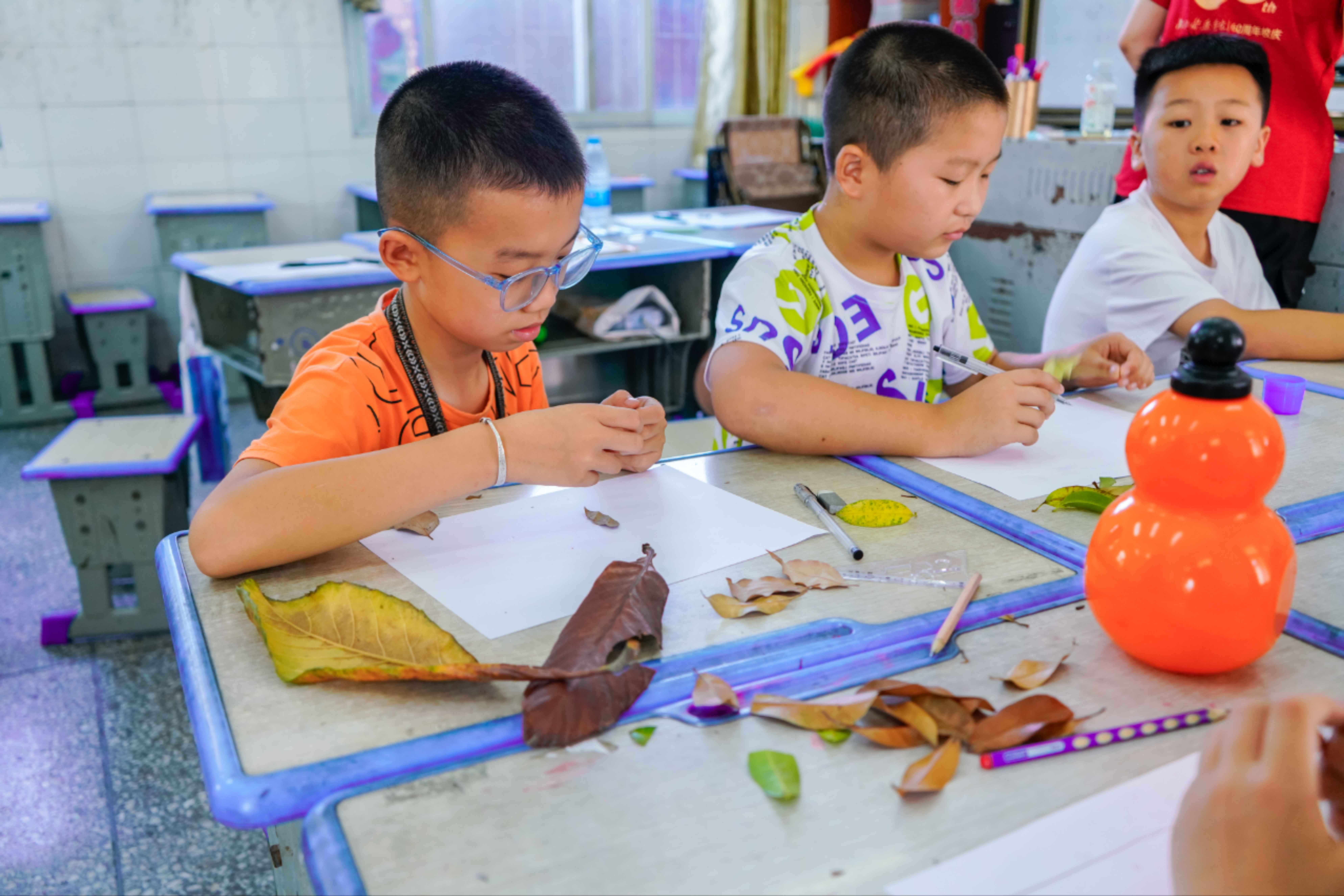实践队首堂手工绘画课——树叶画,吸引了书法组的31名小朋友。队员李小溪老师通过分发材料、讲解安全注意事项,引导孩子们走出教室,分组寻找心仪的落叶。孩子们充分发挥想象力,将自然素材转化为充满童趣的艺术作品。这堂生动的手工课不仅锻炼了孩子们的动手能力,更在一捡一贴、一笔一画间,悄然种下爱护环境、珍惜自然的美好种子。
