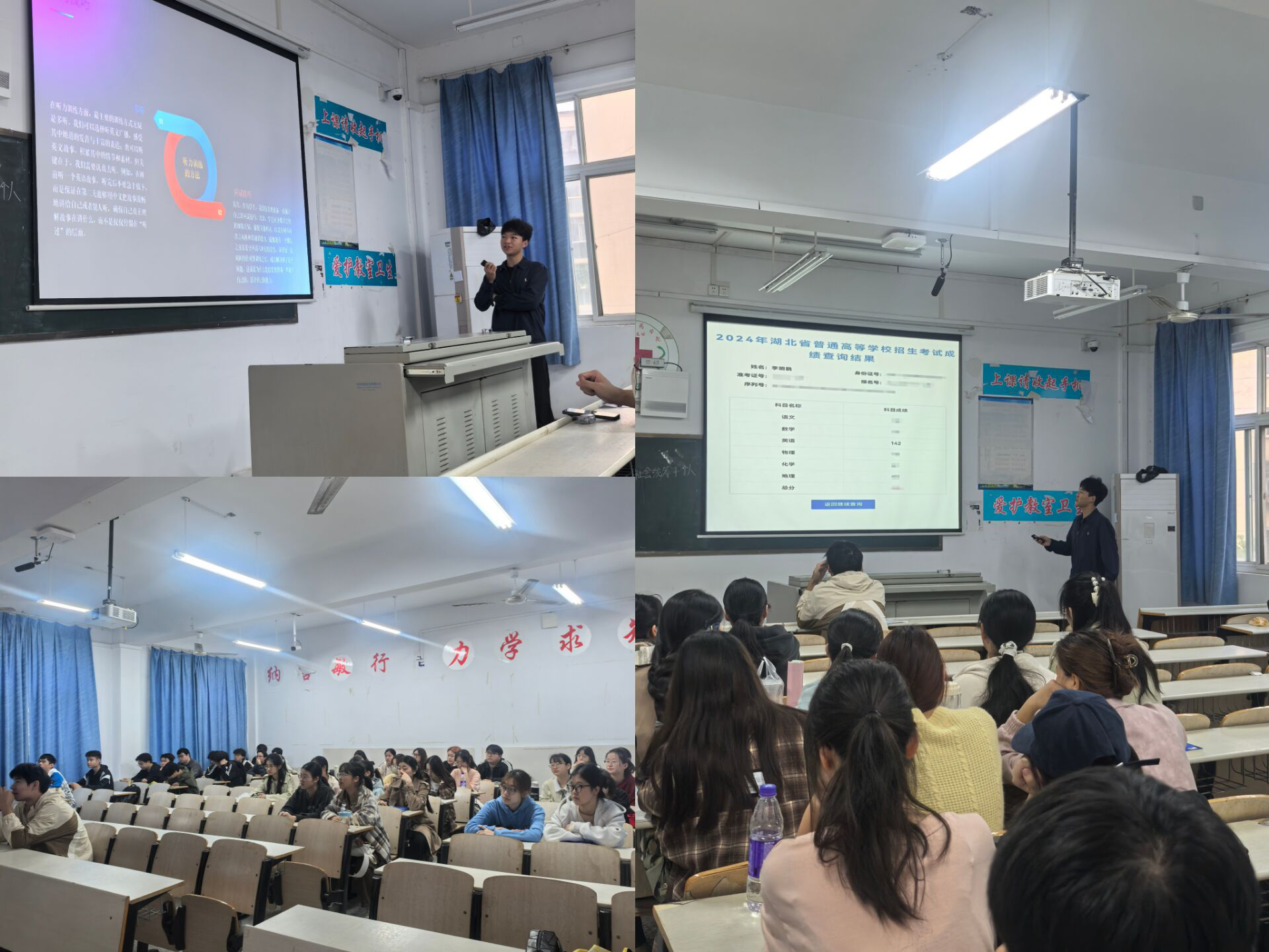本次活动的核心环节,是特邀班级学习委员、英语成绩优异的李明鹞同学进行经验分享。李明鹞同学基于其成功的备考经历,为全班同学带来了一场“干货”满满的分享。他从真题剖析、时间管理、技巧速递三个维度展开,针对听力“抓关键”、阅读“寻主旨”、写作“搭框架”、翻译“破难点”等具体题型,提供了极具操作性的策略。此外,他推荐了亲测有效的学习工具与资源。同学们全程凝神聆听,并在互动环节踊跃提问,现场气氛热烈。为将分享会的短期效益转化为长期动力,班级正式创建了“四六级备考学习群”。此群将作为专属的线上互助平台,鼓励同学们每日打卡、随时分享优质学习资料、交流备考心得、组队练习并相互督促,真正实现资源共享与经验增值。